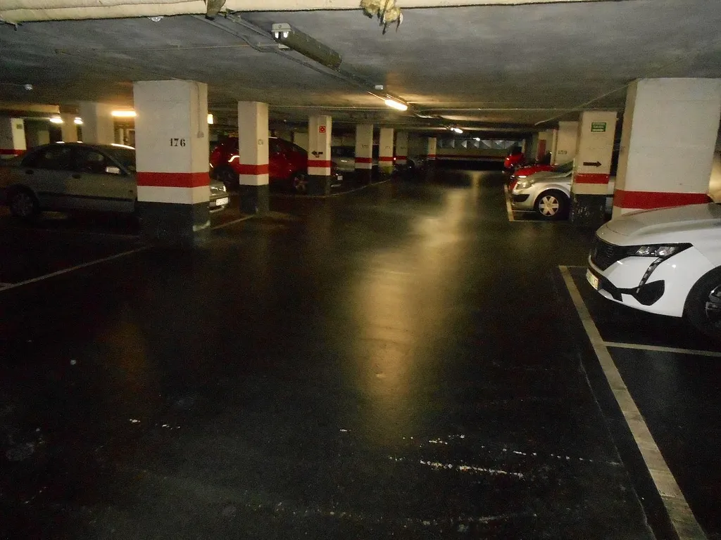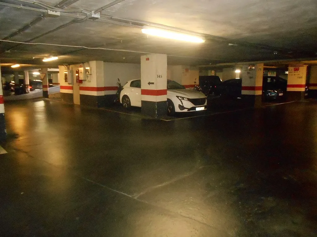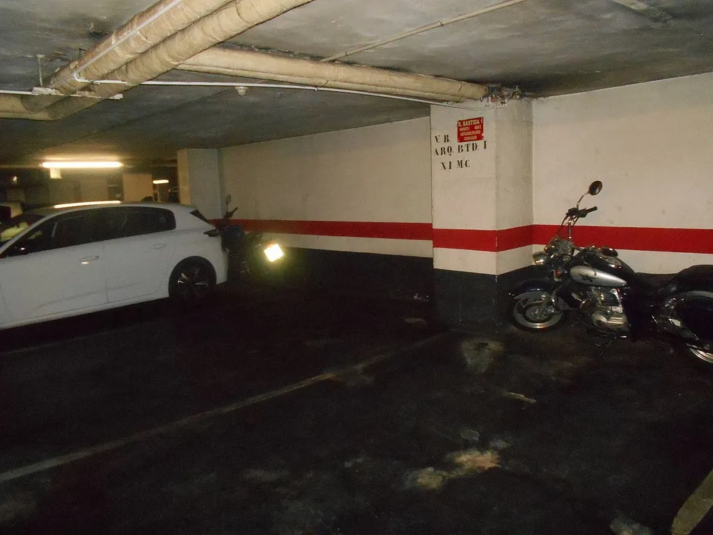 parcela de garaje en el centro de santutxu, muy amplia, con unas dimensiones de 5,50 metros de largo por 3 metros de ancho; cerca de la rampa de entrada y de la puerta peatonal; fácil maniobra.